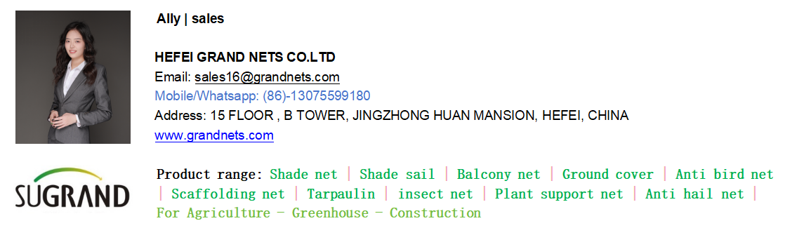 Je suis Ally de la société Sugrand, spécialisée dans les filets en plastique depuis plus de 18 ans.