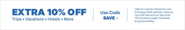 You are receiving this email because jerrygrbr.family@blogger.com is signed up to receive Groupon communications. To adjust how often you receive future Groupon Getaways emails, including unsubscribing, click here.