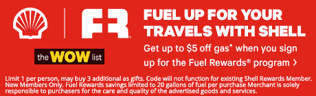 | | 15-Minute Meals Delivered | | Gobble | | $78.93 $33 | Sale Ends 10/18 | |  | | Organic Juice Cleanses | | Juice from the Raw | (9,134) | | $169 $64 | Sale Ends 10/18 | | |  | | Pandora Subscriptions | | Pandora | (21,809) | | $29.97 $0 | |  | | 25¢ Off Per Gallon | | Shell and the Fuel Rewards® Program | | $5 $0 | | | | |  | | 60-Day Membership to Daily Burn | | Daily Burn | (2,512) | | $39.90 $0 | |  | | Custom Canvas Prints | | CanvasOnSale | (69,737) | | $78 $6 | Sale Ends 10/18 | | |  | | Raise your FICO® Score Instantly | | Experian® | (1,105) | | $50 $0 | |  | | Rose Delivery | | Rose Farmers | (2,196) | | $30 $8 | Sale Ends 10/18 | | |  | | Personalized Sketch Pad | | Qualtry | | $39.99 $4 | Sale Ends 10/18 | | | |