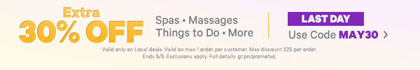 | | Permanent Makeup | | DV Brows & Permanent Makeup | | Sherman Oaks, CA | (18) | | $399 $199 | |  | | Laser Hair-Removal Sessions | | Touch of Class Medspa & Laser... | | Glendale, CA | (1,141) | | $360 $108 | | |  | | Colon Hydrotherapy | | Beverly Hills Colon Hydrotherapy... | | Beverly Hills, CA | (1,271) | | $108 $69 | |  | | Window Tinting | | Mike's Tint Shop | | Multiple locations | (5,987) | | $80 $39 | | |  | | Round Trip Boat Ride | | The Catalina Flyer from Newport... | | Newport Beach, CA | (22,484) | | $70 $44 | |  | | California Real Estate Licensing | | Real Estate U Online | (2,993) | | $148 $99 | | | | |  | | Airport Parking Passes | | 105 Airport Parking | | El Segundo, CA | (935) | | $45 $40 | |  | | Couples Massage | | Ancient Thai Massage | | Los Angeles, CA | (892) | | $180 $102 | | |  | | Laser Fungus Removal | | Restoring Health Medical Institute | | Los Angeles, CA | (155) | | $150 $45 | |  | | Laser Tattoo Removal Sessions | | Tattoo Removers | | Sherman Oaks, CA | (211) | | $900 $99 | | |  | | Psychic Reading | | Intuitive Wanderer | | Orange, CA | (74) | | $39 $29.25 | |  | | Microneedle Stem-Cell Facial | | Park Place Medispa | | Los Angeles, CA | (146) | | $349 $109 | | |  | | 10 Hour Fishing Trip | | Davey's Locker | | Newport Beach, CA | (26,708) | | $61 $30 | |  | | Therapeutic Hypnosis | | Hypnosis Beverly Hills | | Los Angeles, CA | (136) | | $440 $79 | | |  | | Laser Hair-Removal Sessions | | Downtown Laser and Anti-Aging | | Los Angeles, CA | (177) | | $200 $59 | |  | | Colon Hydrotherapy | | Gohar Carole Franck Spa | | Glendale, CA | (694) | | $90 $49 | | | |