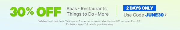 | | Color / Highlights | | Melina hair and make up studio | | Glendale, CA | (161) | | $80 $50 | |  | | VIP Ziplining Package | | Rio Zipline Experience | | Las Vegas, NV | (11,303) | | $80 $20 | | |  | | Brake Pad Replacement | | AB Smog and Auto Repair | | Los Angeles, CA | (3) | | $140 $89 | |  | | Colon Hydrotherapy | | Beverly Hills Colon Hydrotherapy... | | Beverly Hills, CA | (1,280) | | $108 $69 | | |  | | New American Cuisine | | Marmalade Cafe | | El Segundo, CA | (1,804) | | $50 $30 | |  | | PRP and Microneedling Treatments | | The Skin Agency | | Los Angeles, CA | (1,147) | | $500 $149 | | | | |  | | Comfort Food Curbside Pickup | | Dinah's Chicken- Glendale | | Glendale, CA | (1,525) | | $32 $28 | |  | | Brazilian BBQ Feast | | Samba By The Sea | | Redondo Beach, CA | | $119.90 $65 | | |  | | Studio Photography | | Panos Productions Photography | | Multiple locations | (14) | | $600 $348 | |  | | SculpSure Treatments | | The Aesthetics Studio | | Los Angeles, CA | (47) | | $1,000 $699 | | |  | | Carry-Out and Dine-In Vouchers | | Marmalade Cafe | | Multiple locations | (4,231) | | $50 $30 | |  | | Laser Hair-Removal Sessions | | Luna Med Spa | | Los Angeles, CA | (74) | | $180 $121 | | |  | | Spa Package and Massage | | Frais Spa at O Hotel | | Los Angeles, CA | (92) | | $150 $111 | |  | | Airport Parking Passes | | 105 Airport Parking | | El Segundo, CA | (935) | | $45 $40 | | |  | | Facial Treatments | | Irene's Skintopia | | Los Angeles, CA | (284) | | $185 $65 | |  | | Fried Chicken and More | | Honey's Kettle Fried Chicken | | Culver City, CA | (18,805) | | $15 $11 | | | |